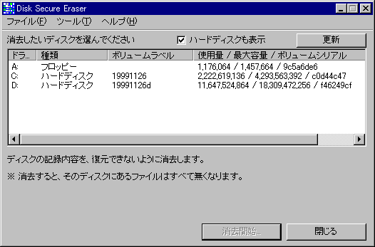 Disk Secure Eraser - 画面サンプル