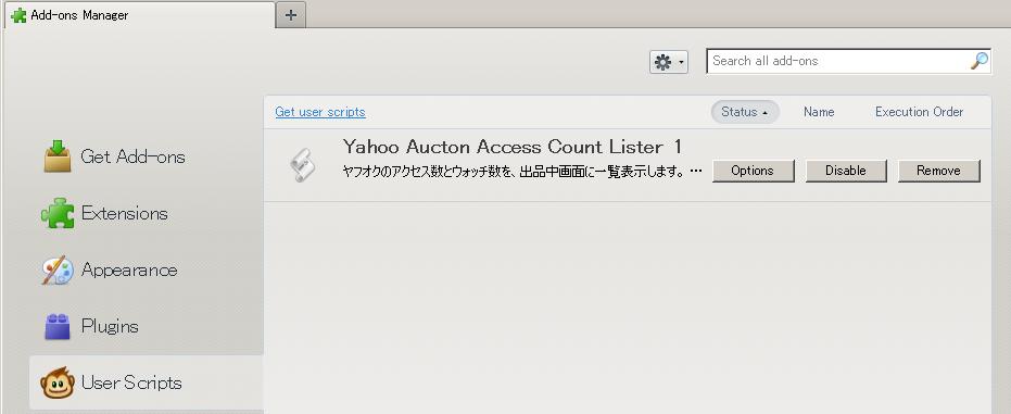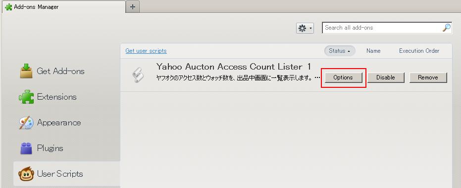 (2) Yahoo Acution Access Count Lister の右側にある Options