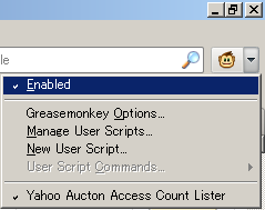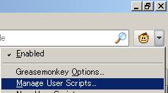 グリースモンキーのツールアイコン(Firefoxのツールバーの右上付近にある)の、プルダウンメニュー